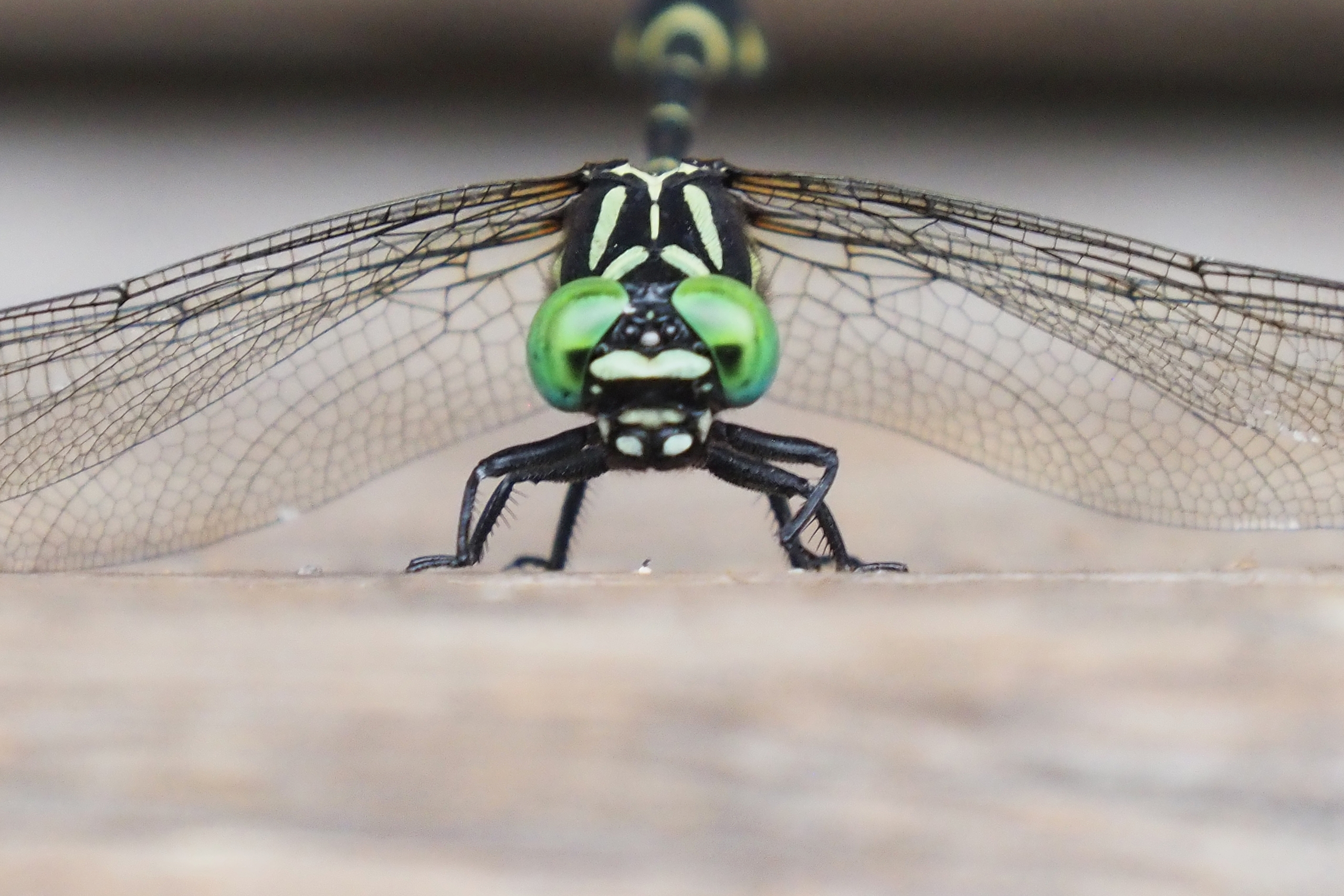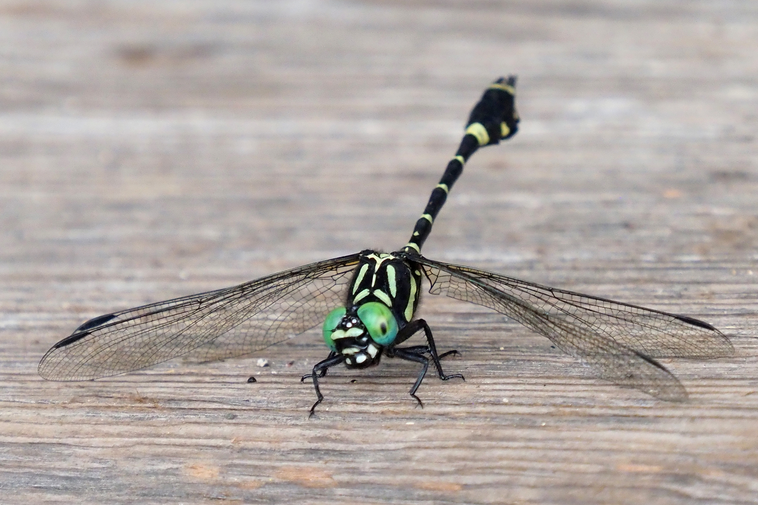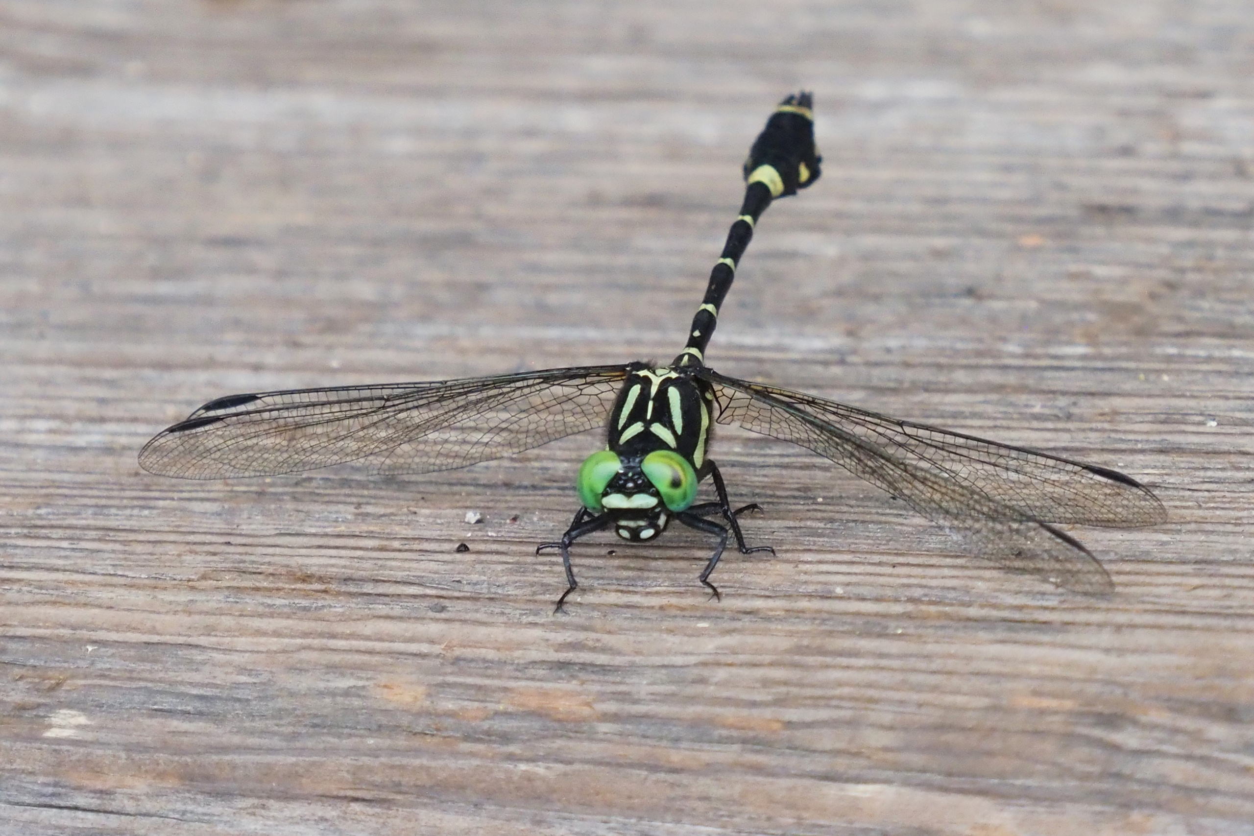 オニヤンマに似た配色から名前に「ヤンマ」がつきますが、オニヤンマ科でもヤンマ科でもなくて、サナエトンボ科です。