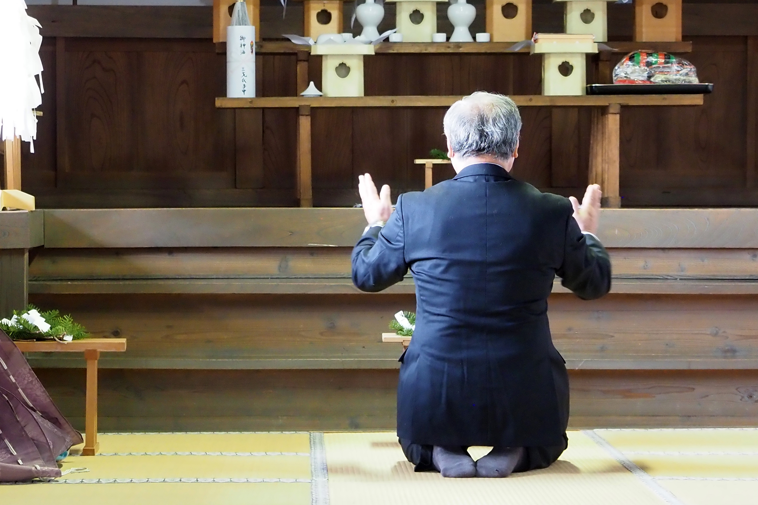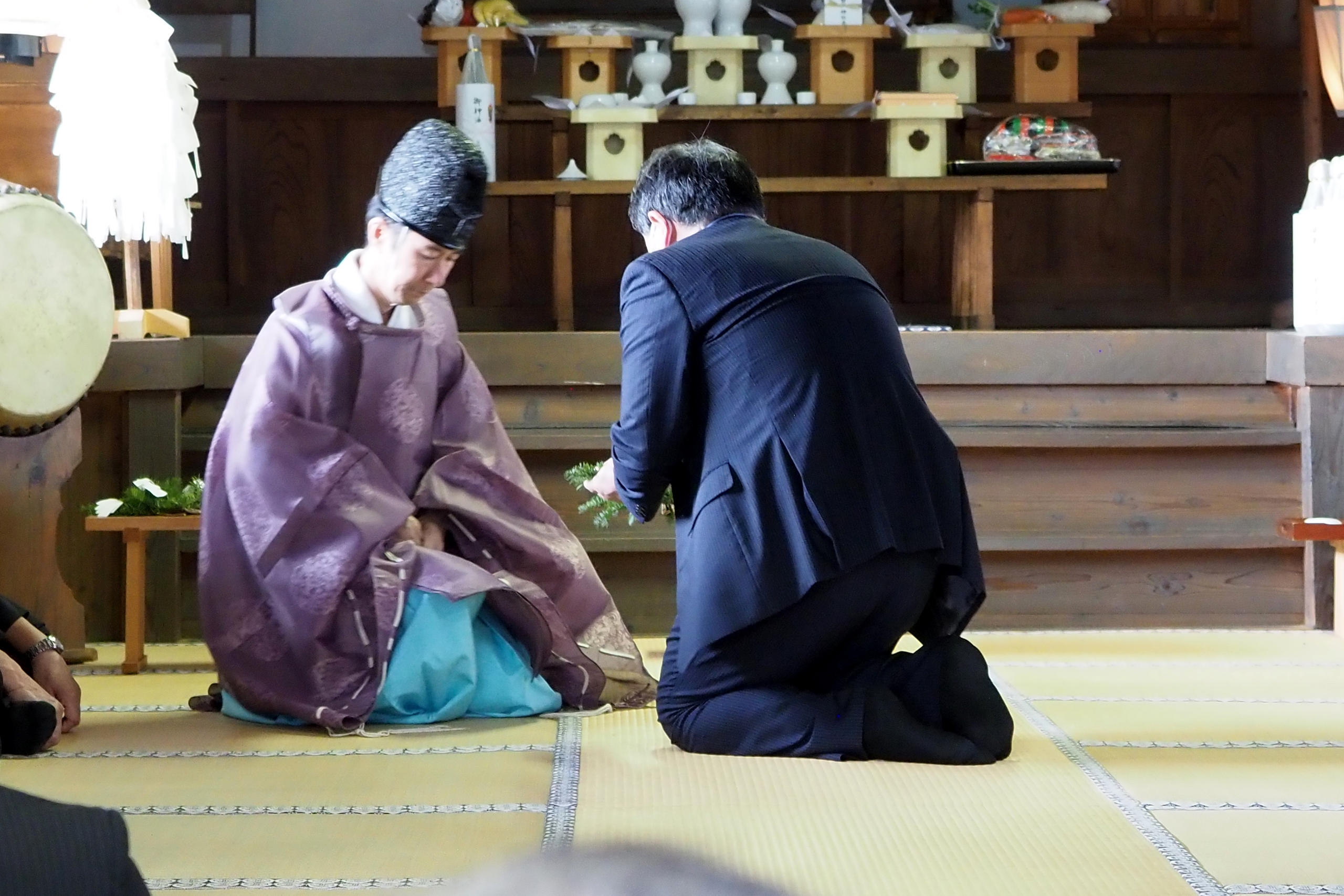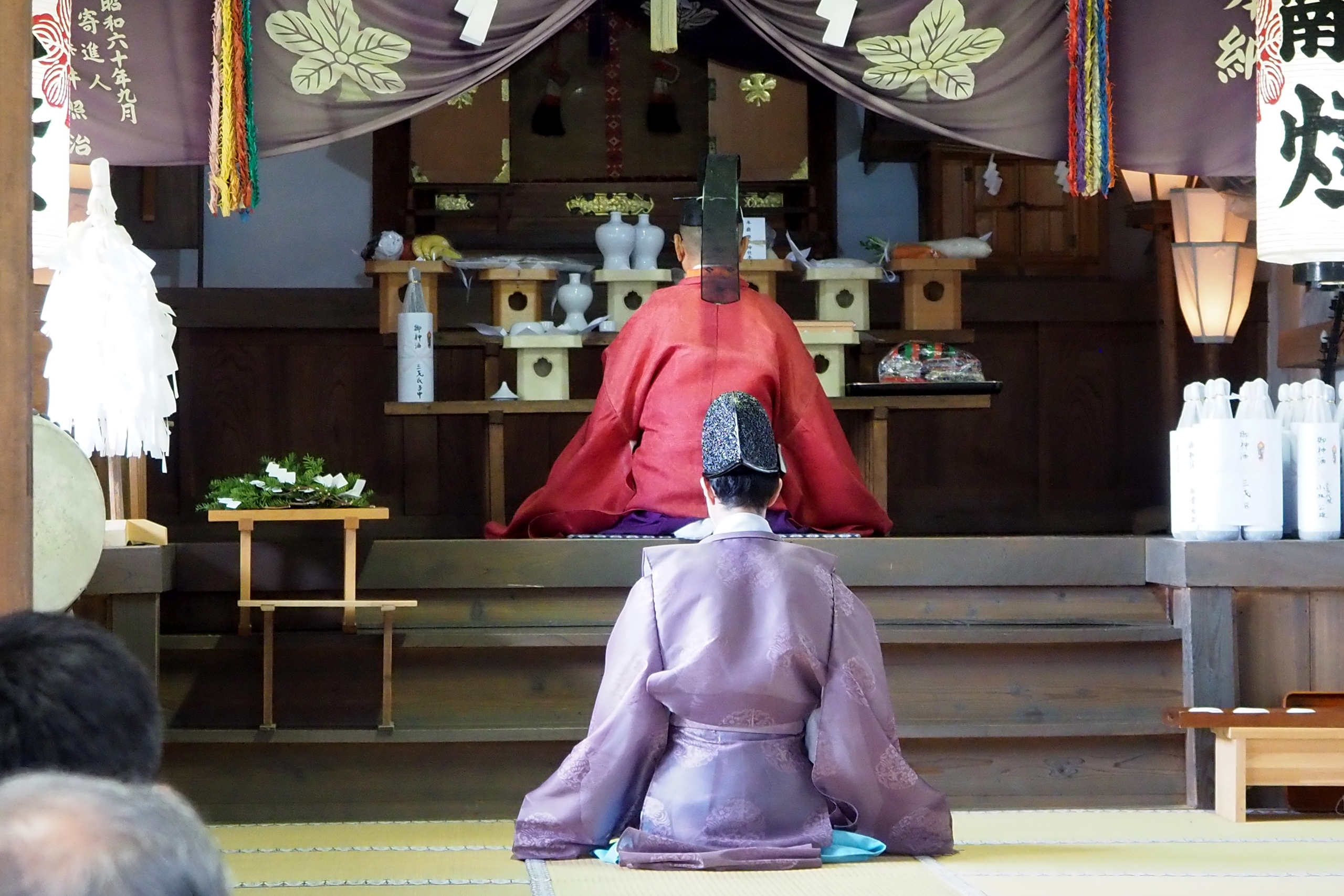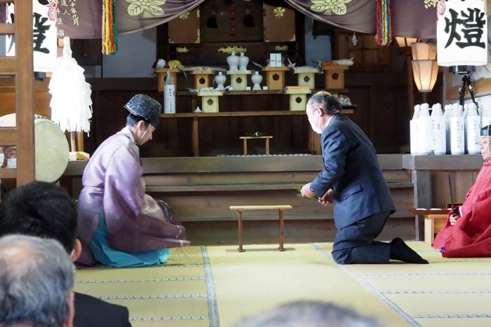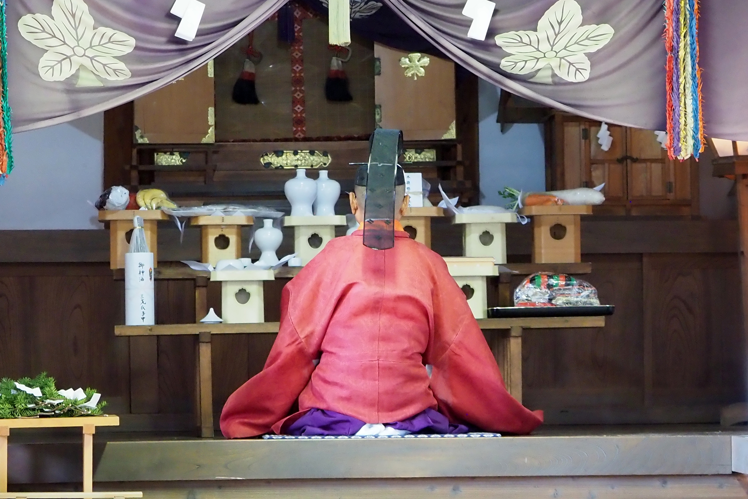 本降りの雨こそ止んだものの、まだ小雨が残る中、三才諏訪神社の例大祭が執り行われました。 昨年と同様に、新型コロナウィルスによる感染症拡大防止のため、野黒宮司、長沼宮司、そして役員の一部のみが出席する最小限の祭事となりました。 宵祭りがなく、獅子舞も神楽の奉納もないお祭りが普通になりつつある現状に、一抹の寂しさを覚えずにはいられませんでした。