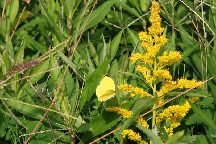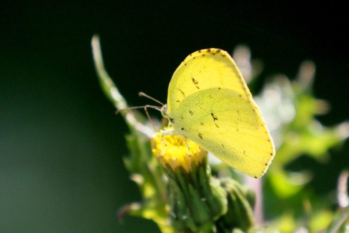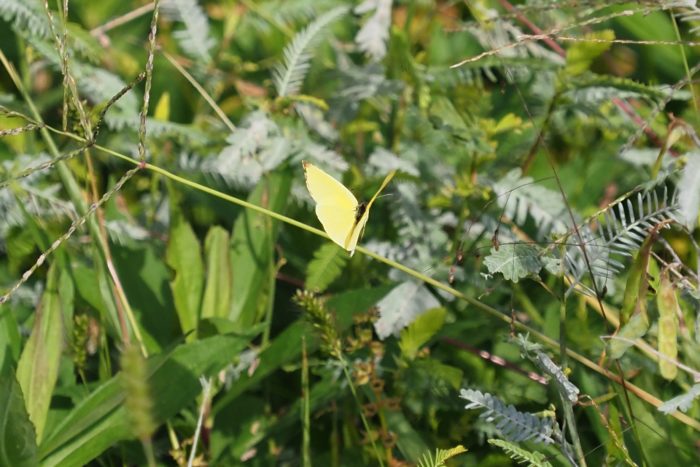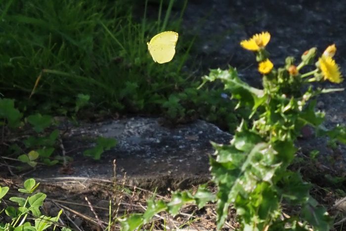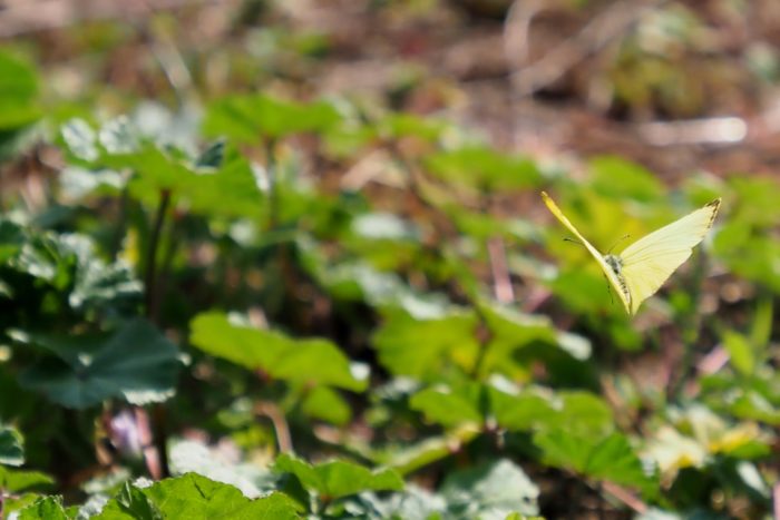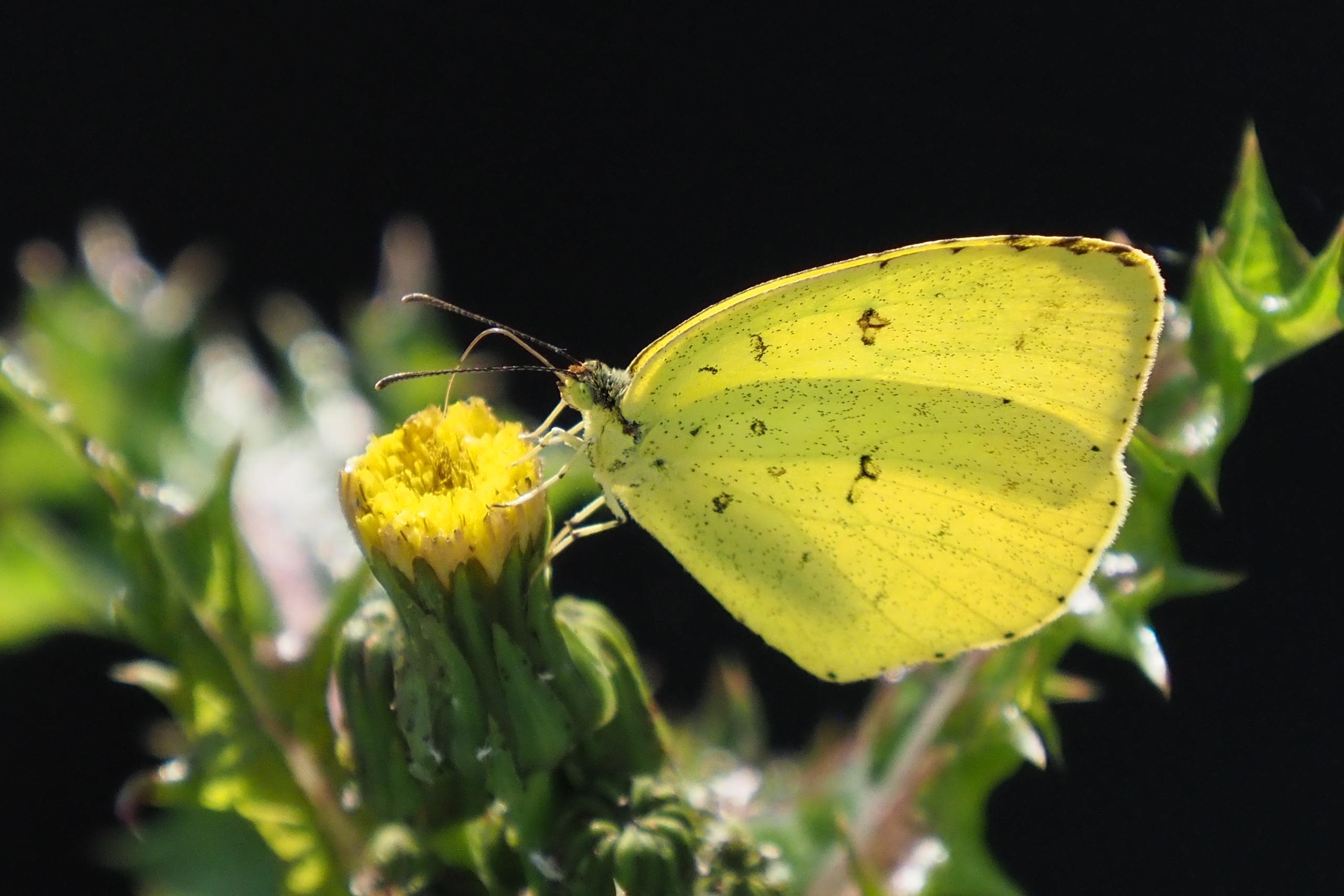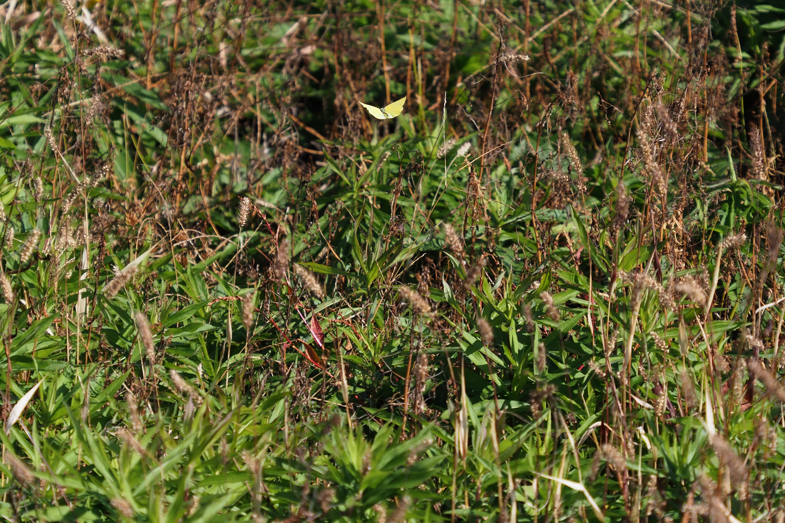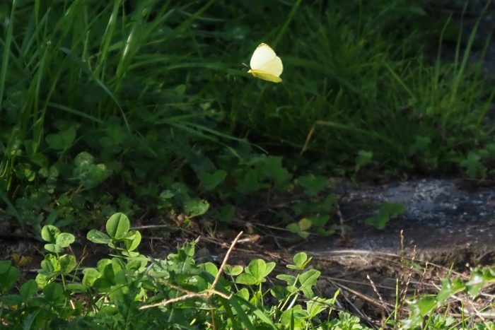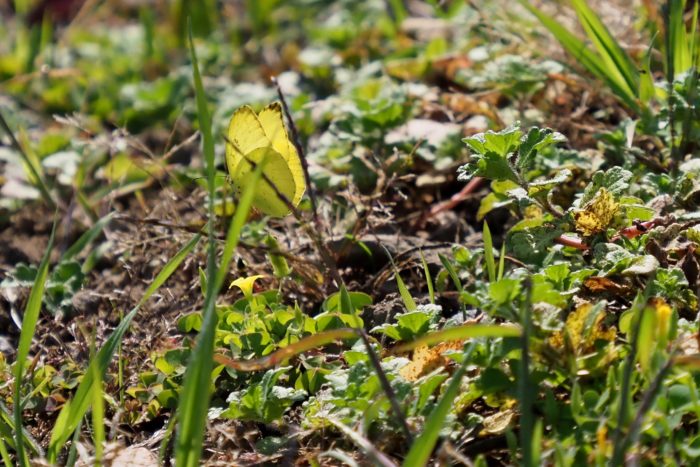 モンキチョウよりも少し小さいのですが、成虫で越冬するので11月でも飛んでいる姿を見かけます。