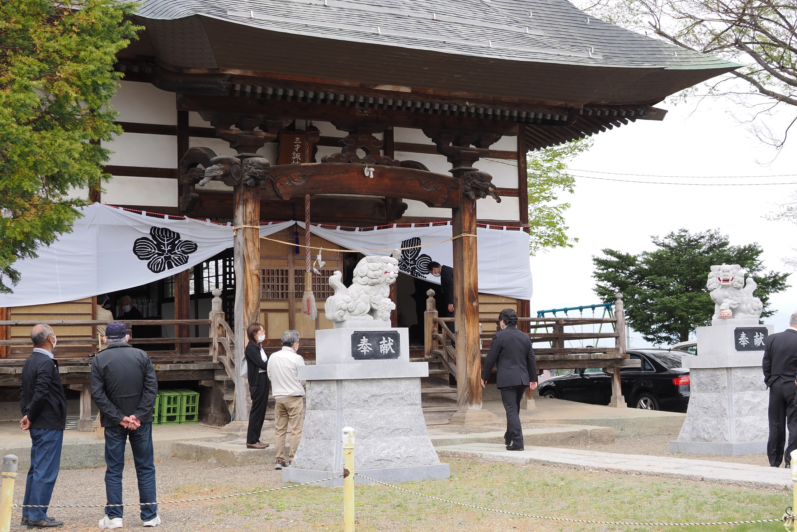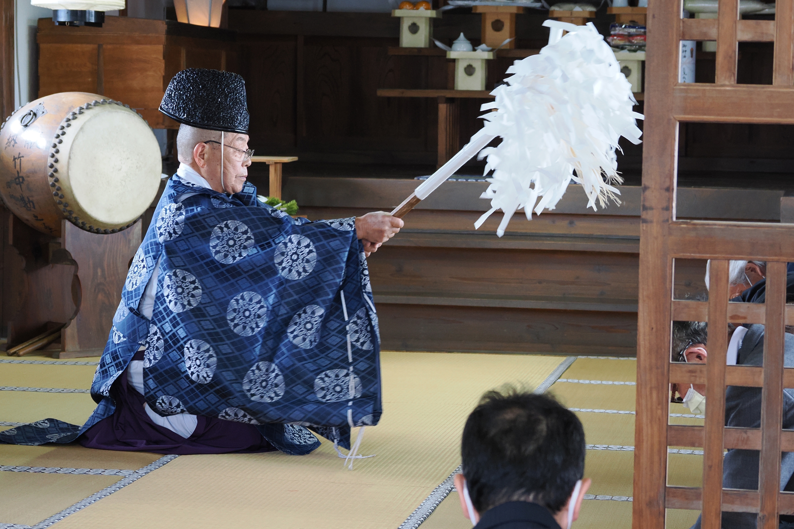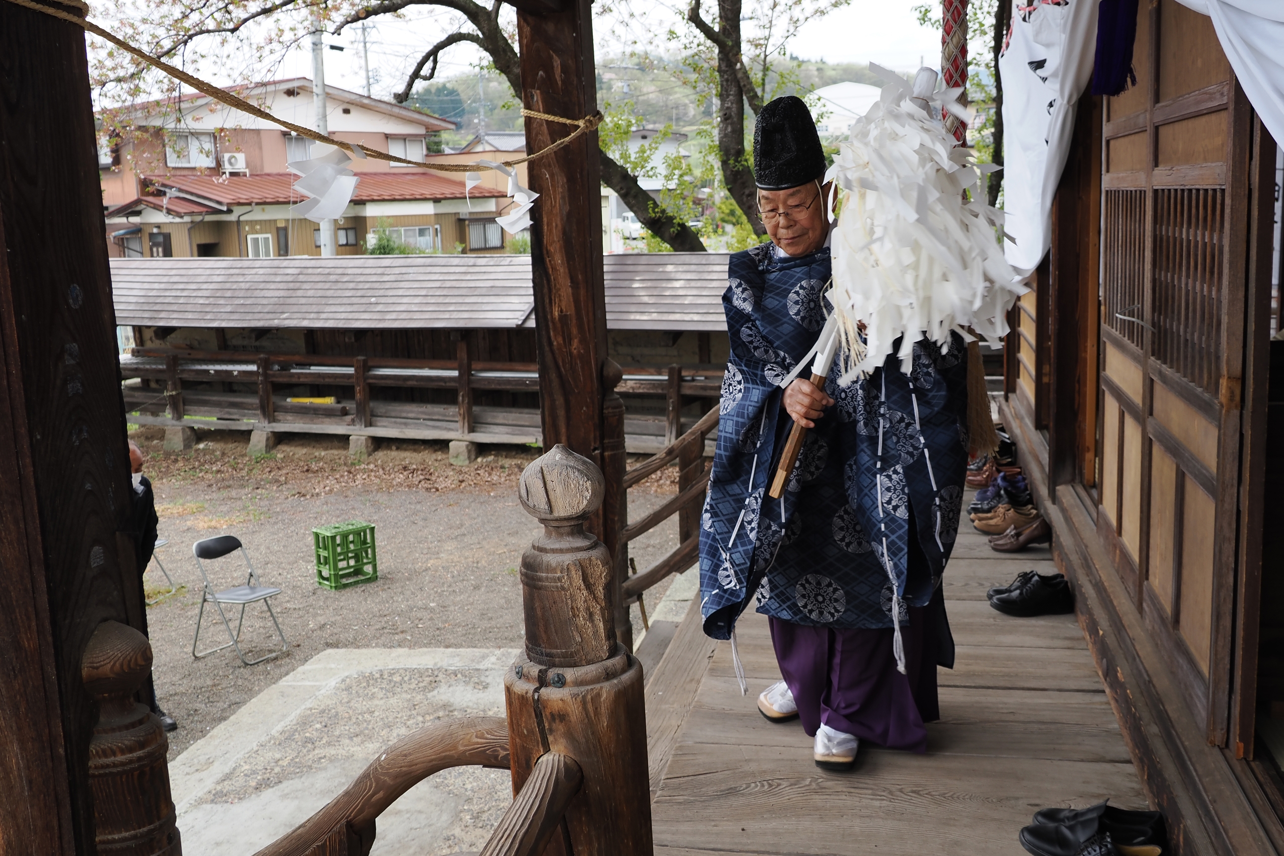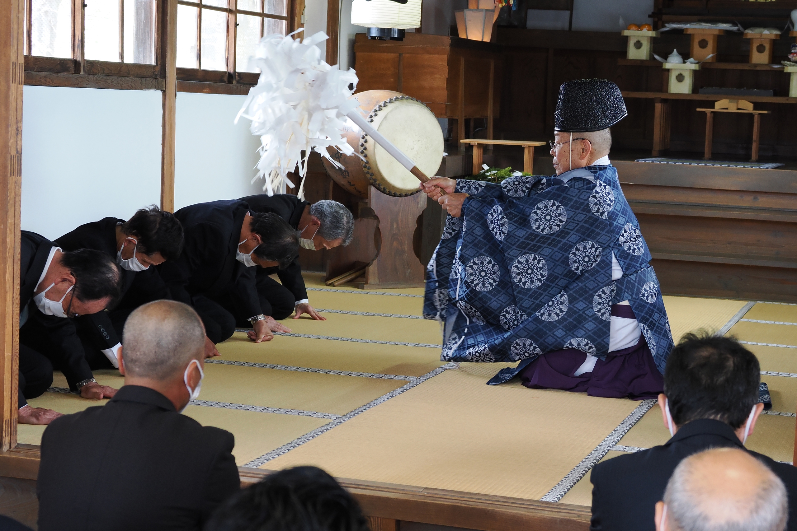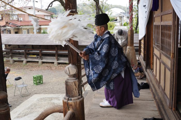 4月24日 曇り空の下、「例年どおり」の強風が吹く中で、三才諏訪神社の「春祭り」が行われました。 新型コロナウィルスによる感染症の拡大防止のため、参加者を減らし、宮司と役員の一部のみが出席するという「異例の春祭り」も既に3度目になってしまいました。