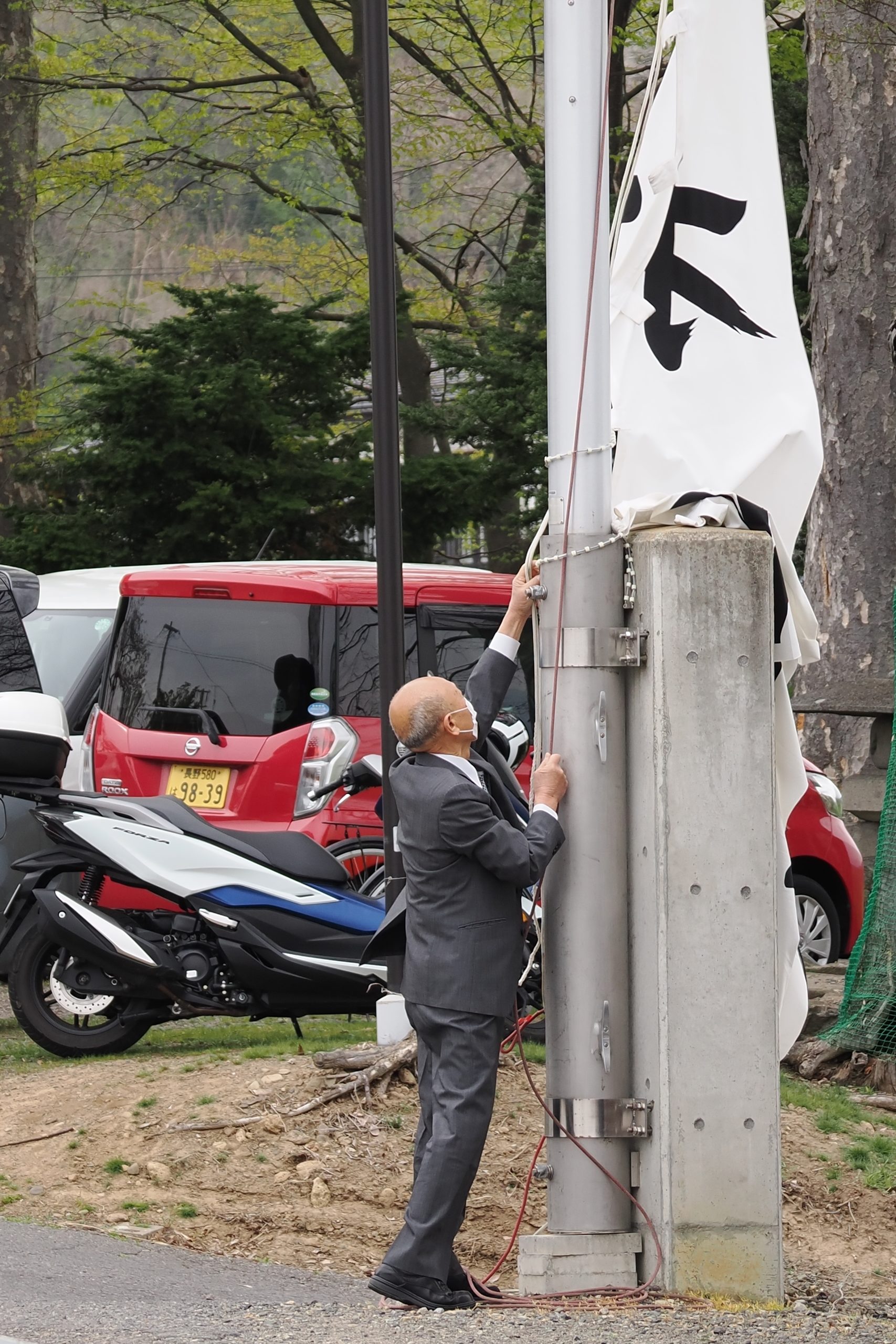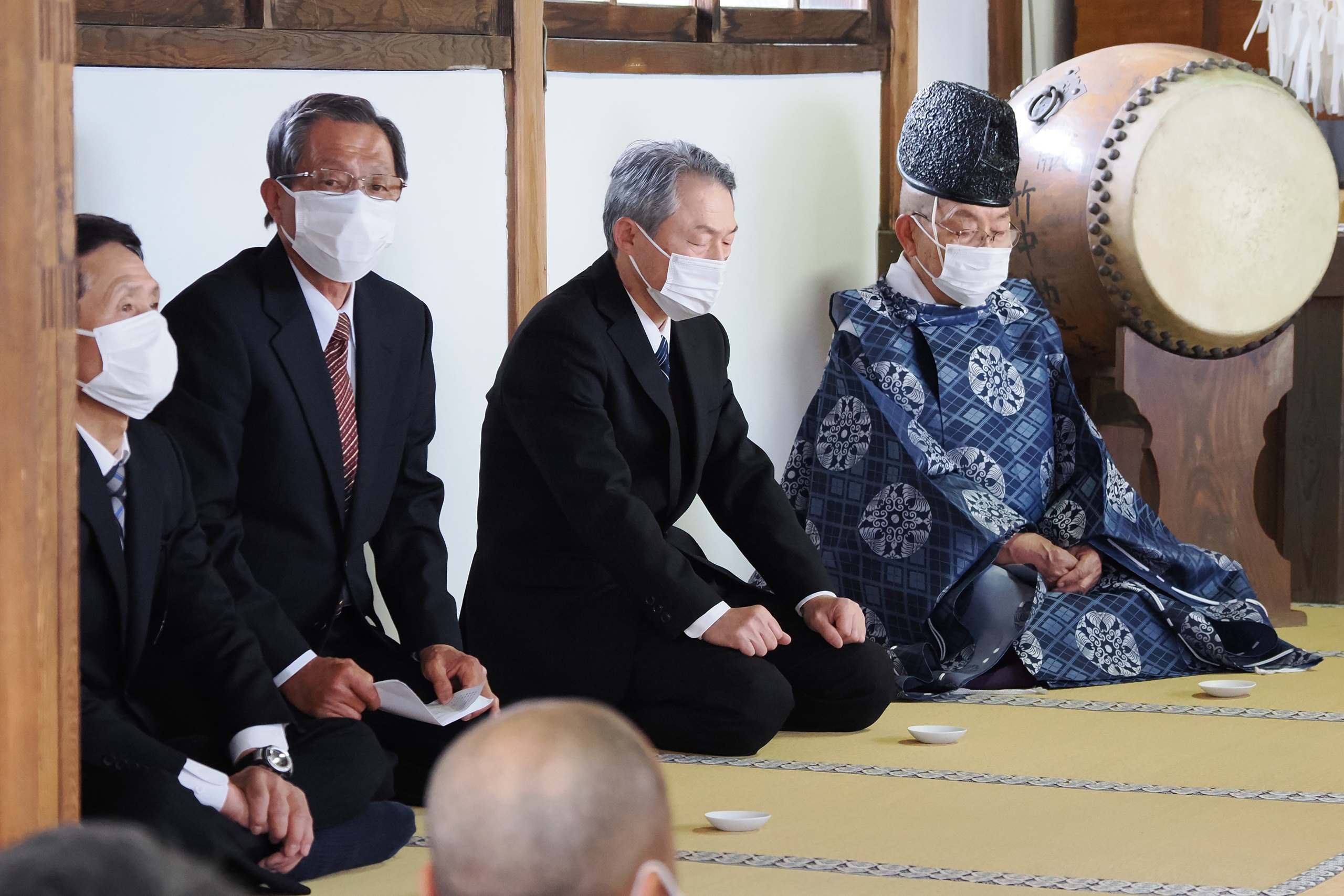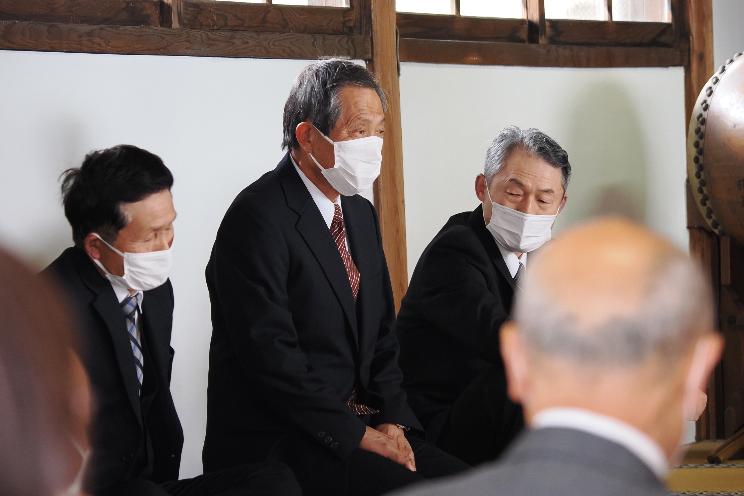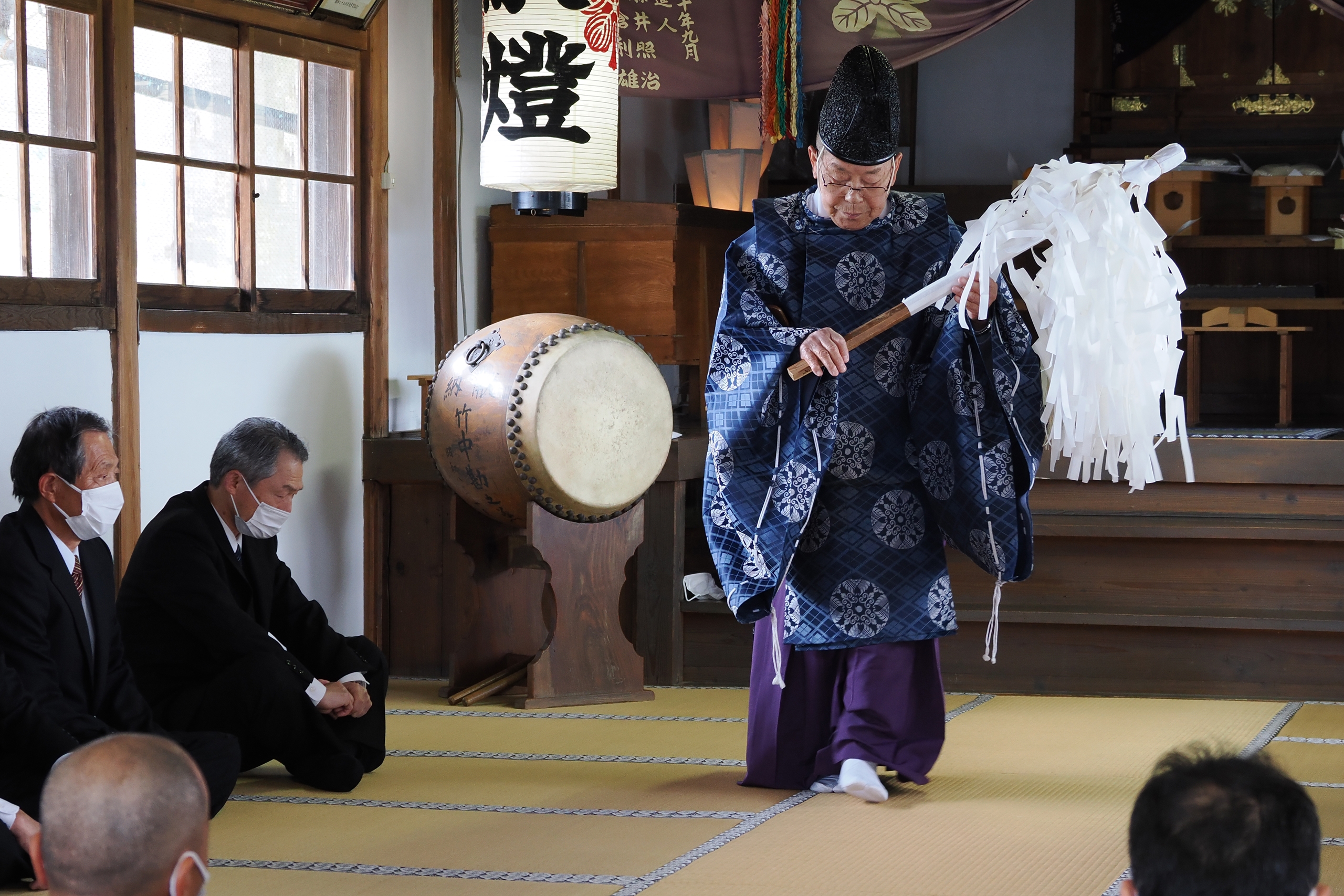4月24日 曇り空の下、「例年どおり」の強風が吹く中で、三才諏訪神社の「春祭り」が行われました。 新型コロナウィルスによる感染症の拡大防止のため、参加者を減らし、宮司と役員の一部のみが出席するという「異例の春祭り」も既に3度目になってしまいました。