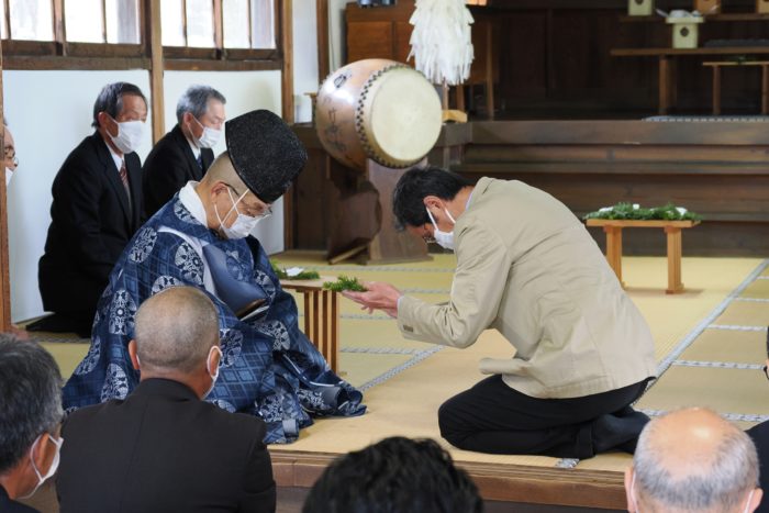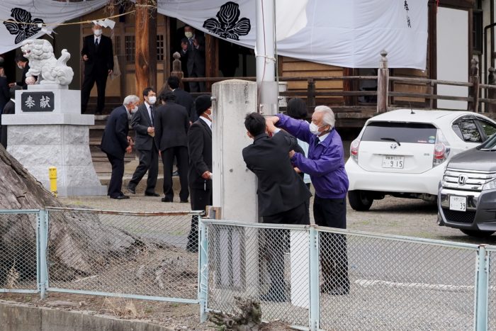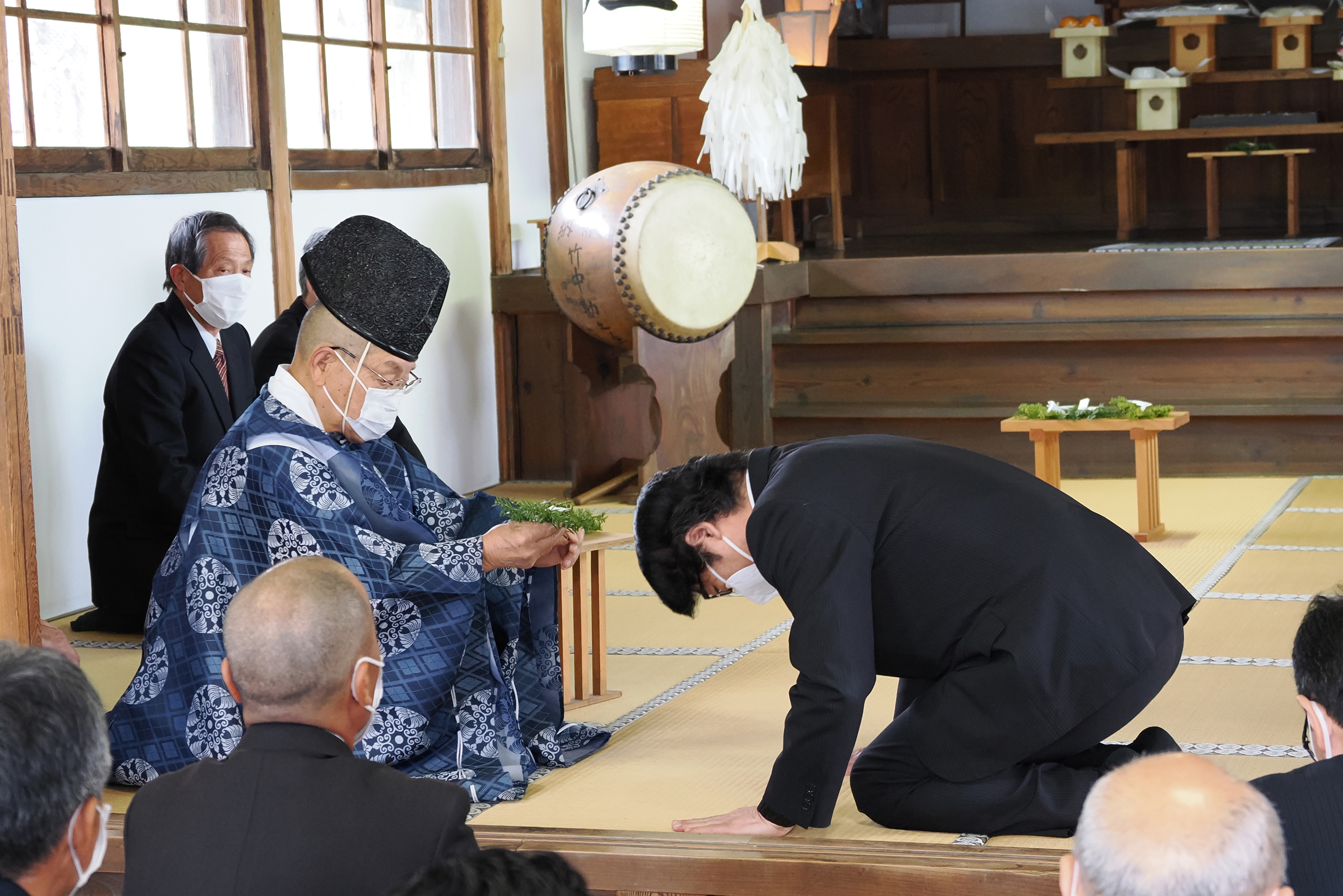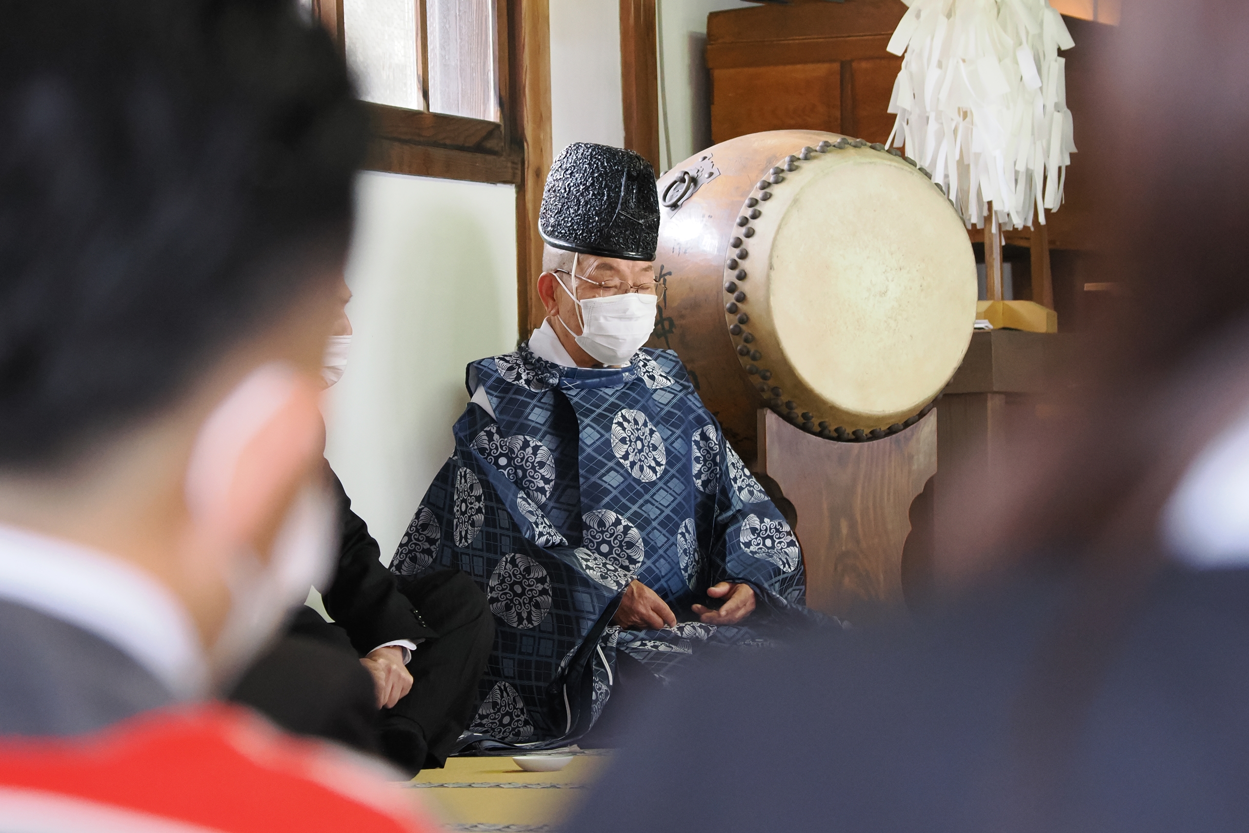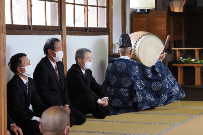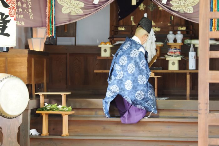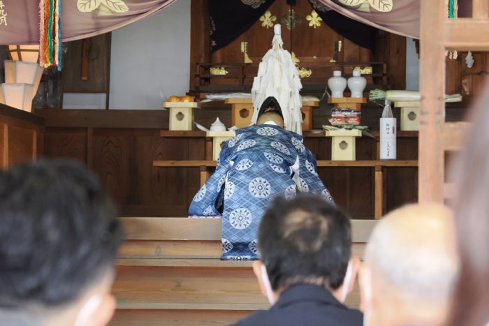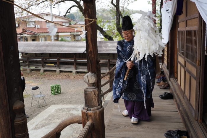 4月24日 曇り空の下、「例年どおり」の強風が吹く中で、三才諏訪神社の「春祭り」が行われました。 新型コロナウィルスによる感染症の拡大防止のため、参加者を減らし、宮司と役員の一部のみが出席するという「異例の春祭り」も既に3度目になってしまいました。