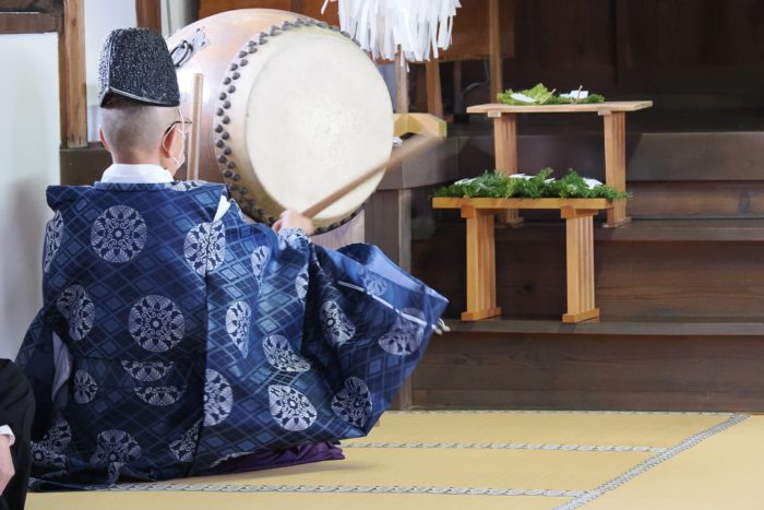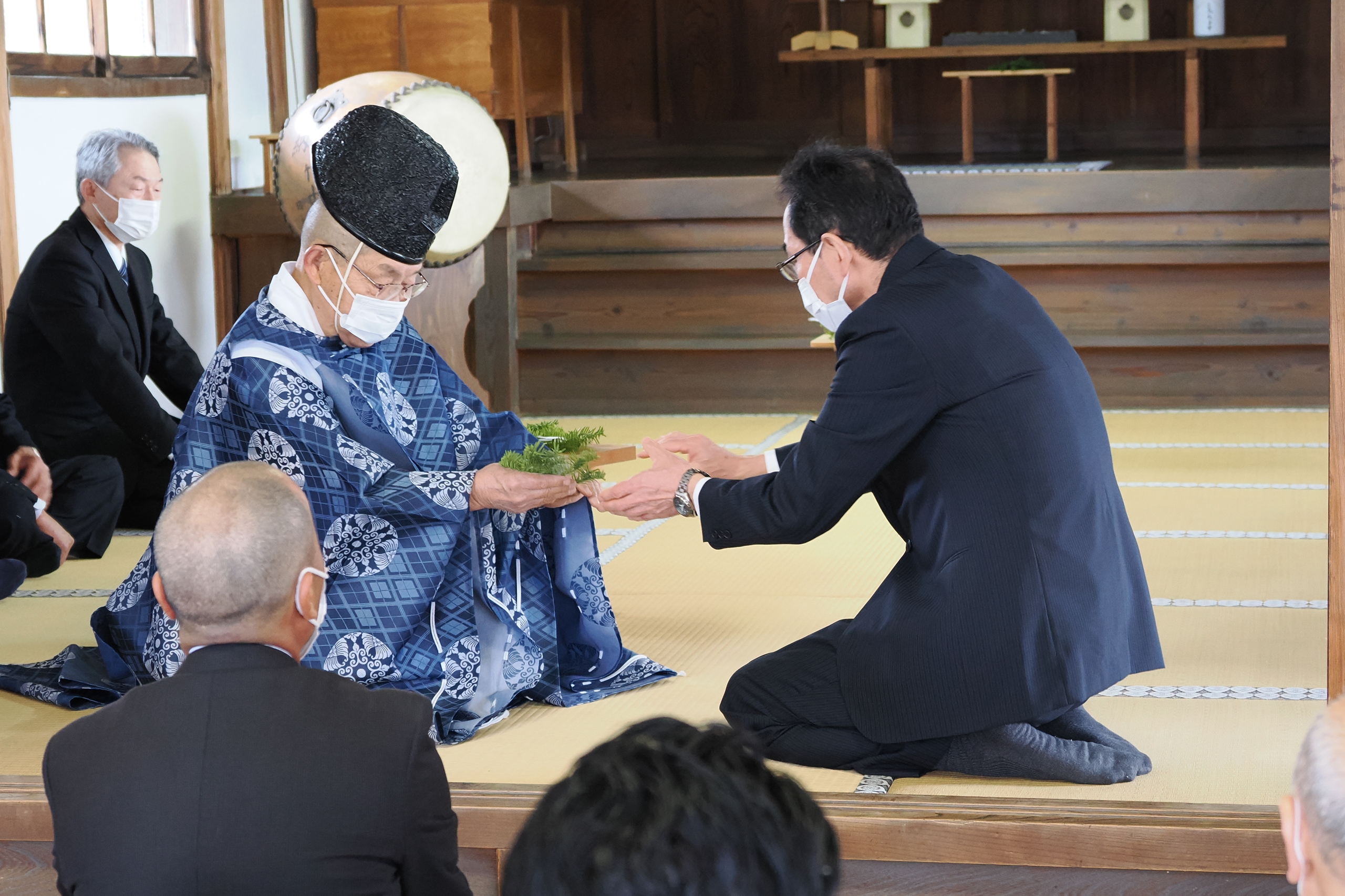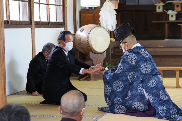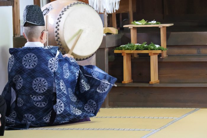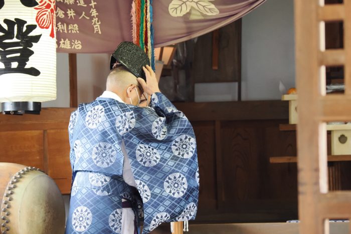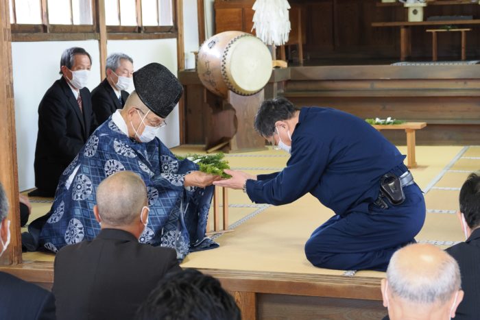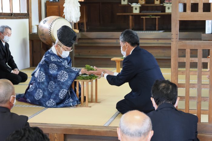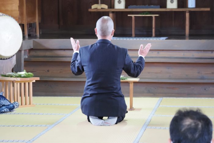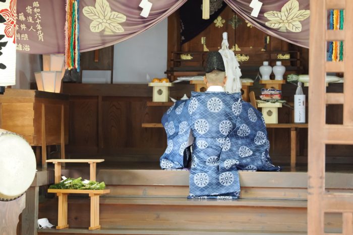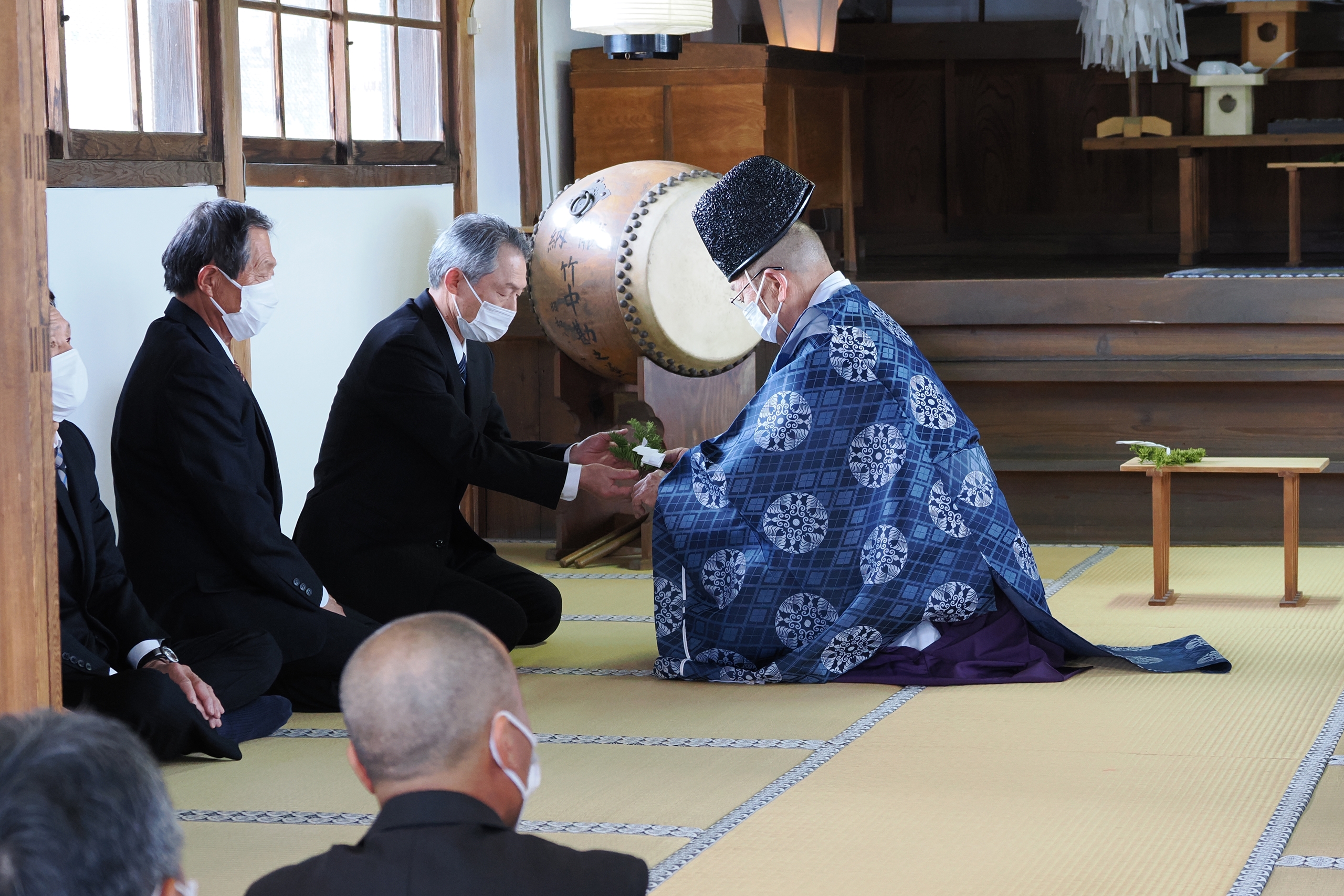 4月24日 曇り空の下、「例年どおり」の強風が吹く中で、三才諏訪神社の「春祭り」が行われました。 新型コロナウィルスによる感染症の拡大防止のため、参加者を減らし、宮司と役員の一部のみが出席するという「異例の春祭り」も既に3度目になってしまいました。