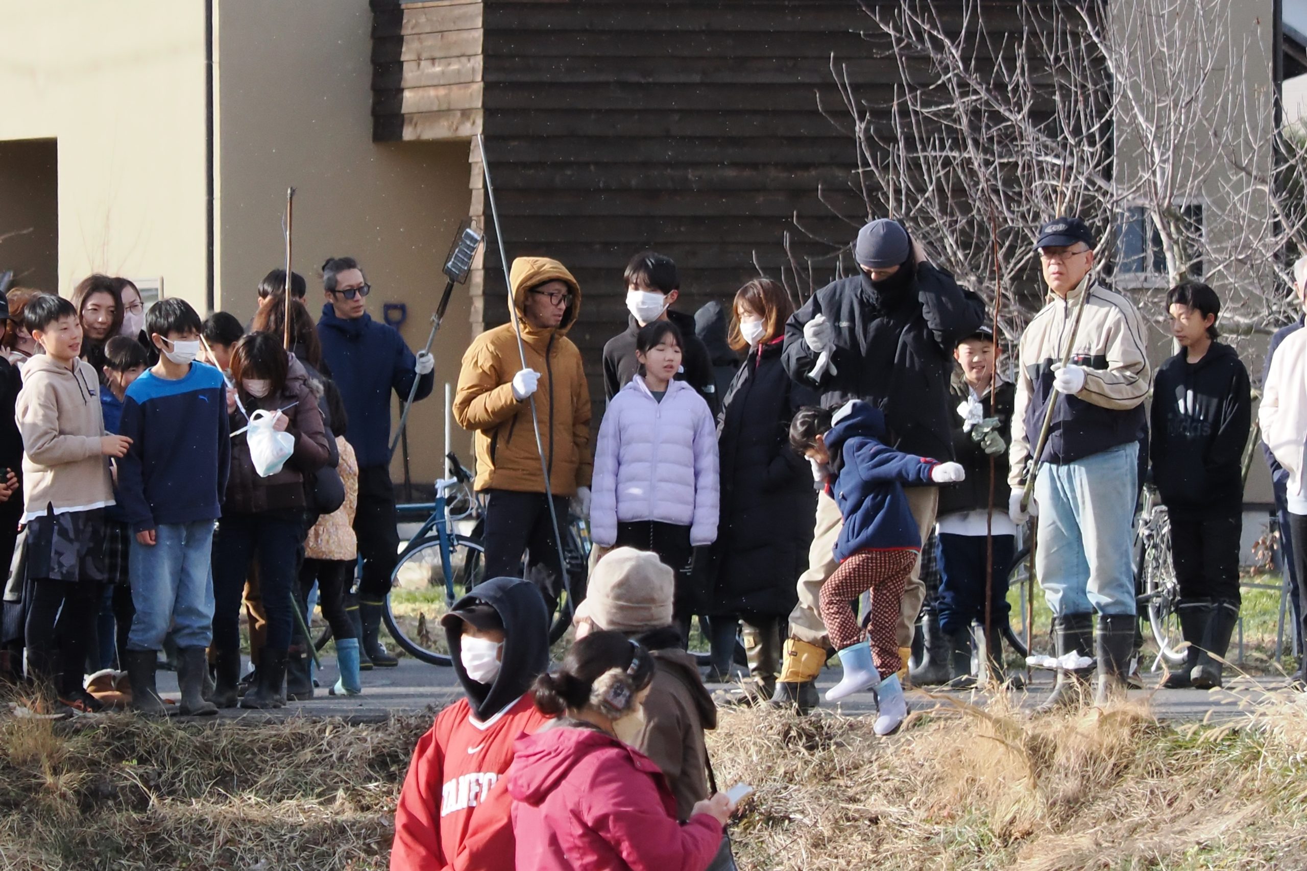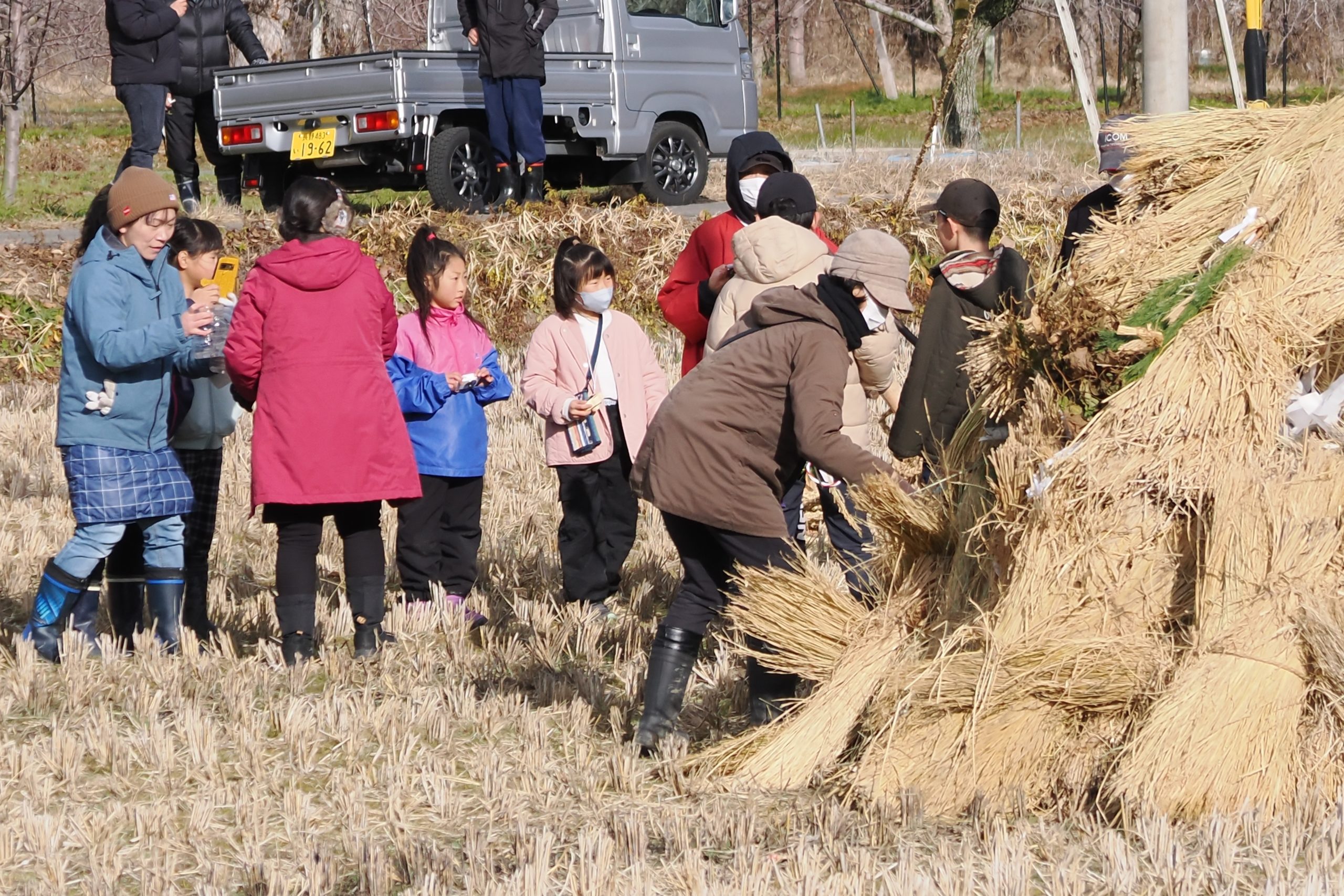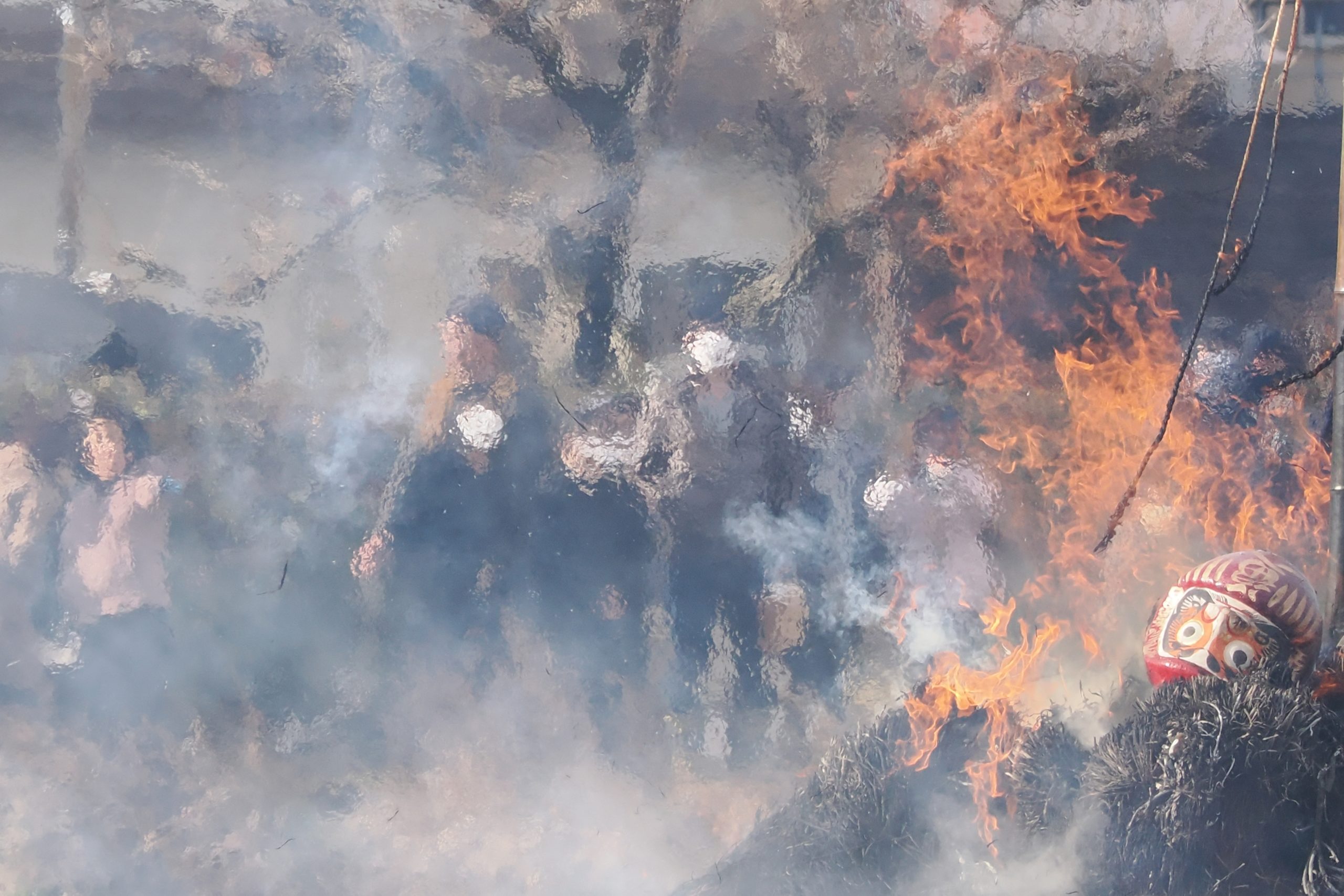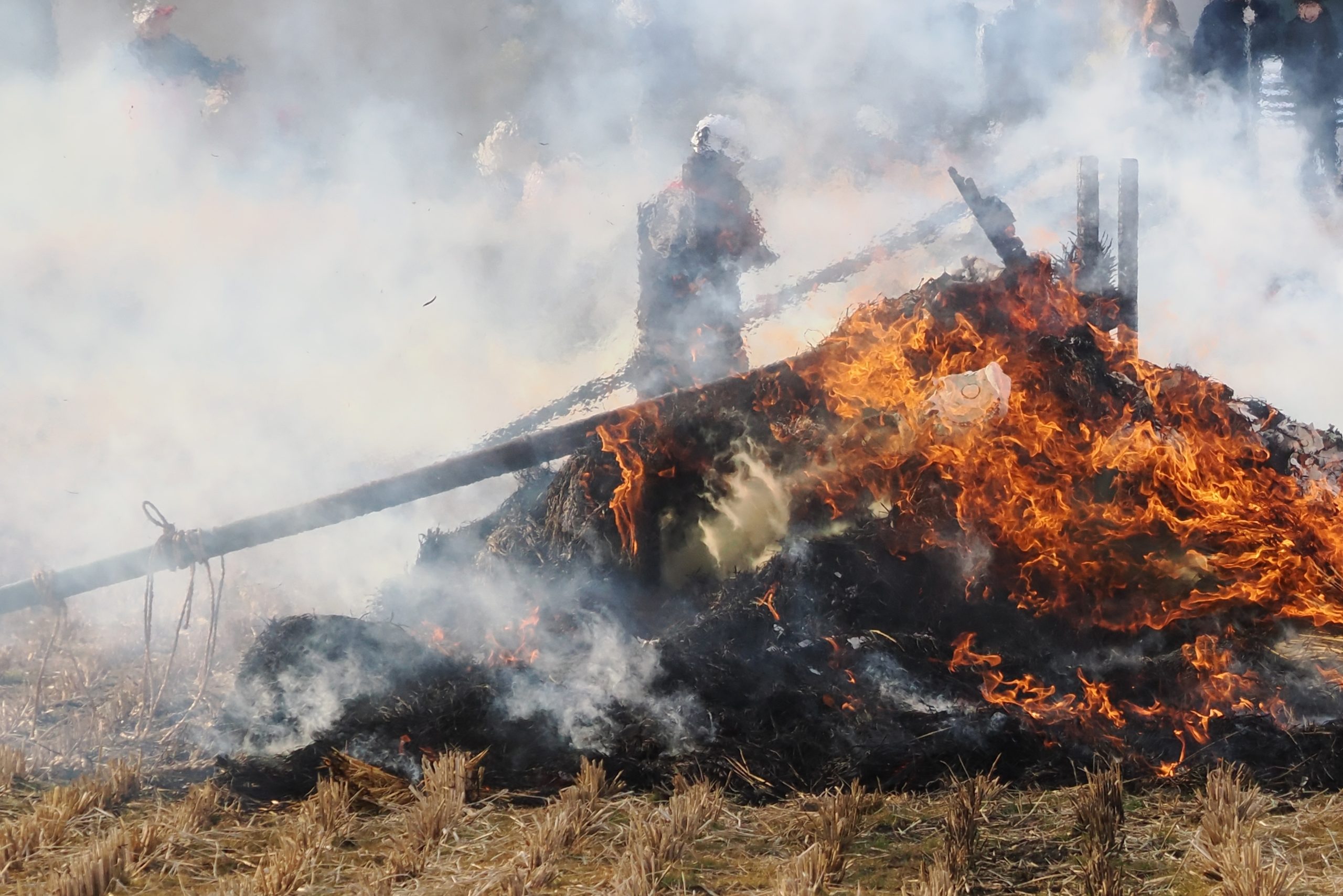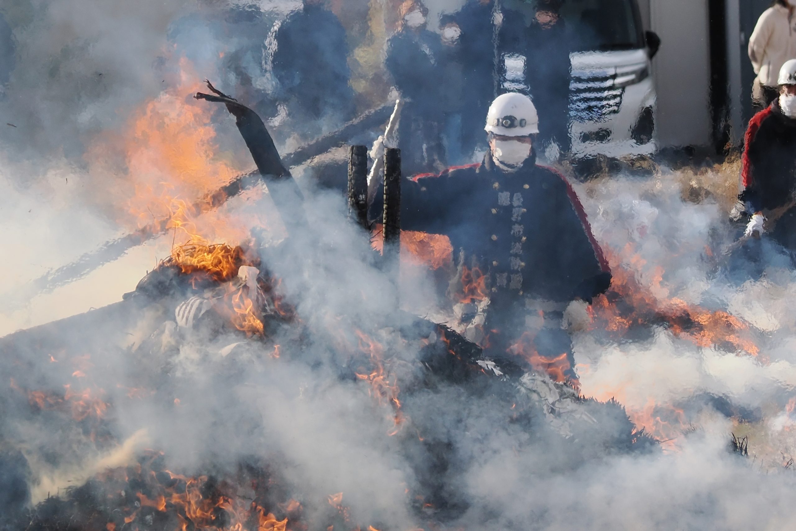 しめった小雪が舞いましたが、滞りなくどんど焼きが行われました。 未明まで予報は雨でしたし、一日ずれていたら大雪でした。