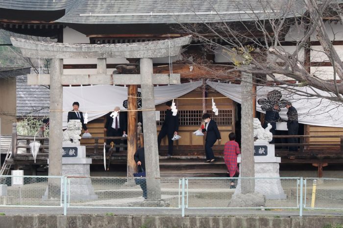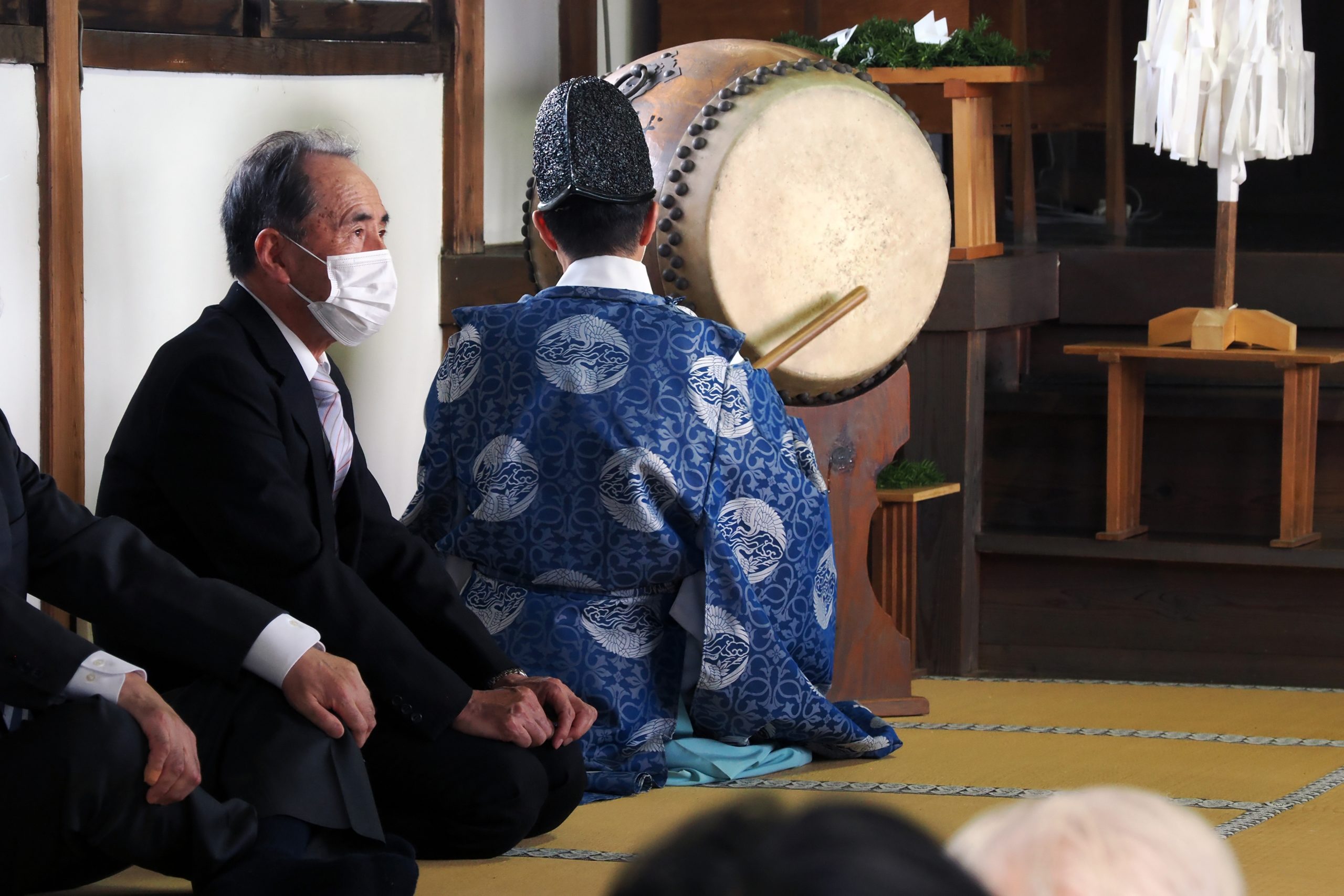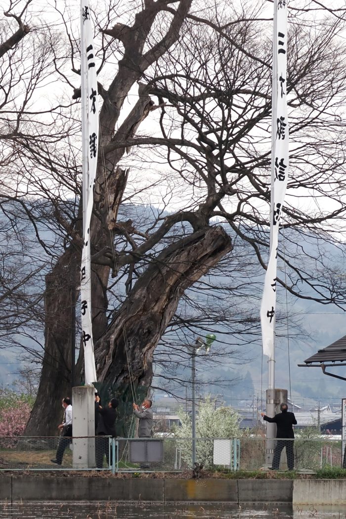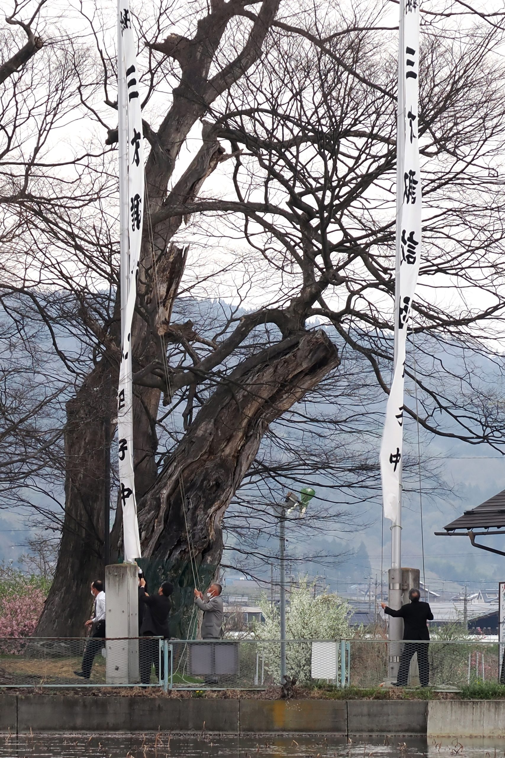 4月20日 小雨まじりのあいにくの天気でしたが、久しぶりに桜の花がしっかりと残っている春祭りでした。